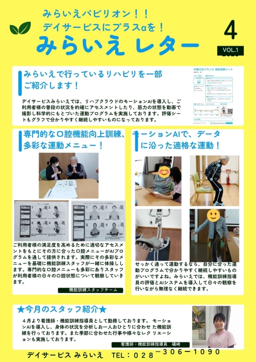 デイサービスみらいえが始まって初めての広報誌となります♪